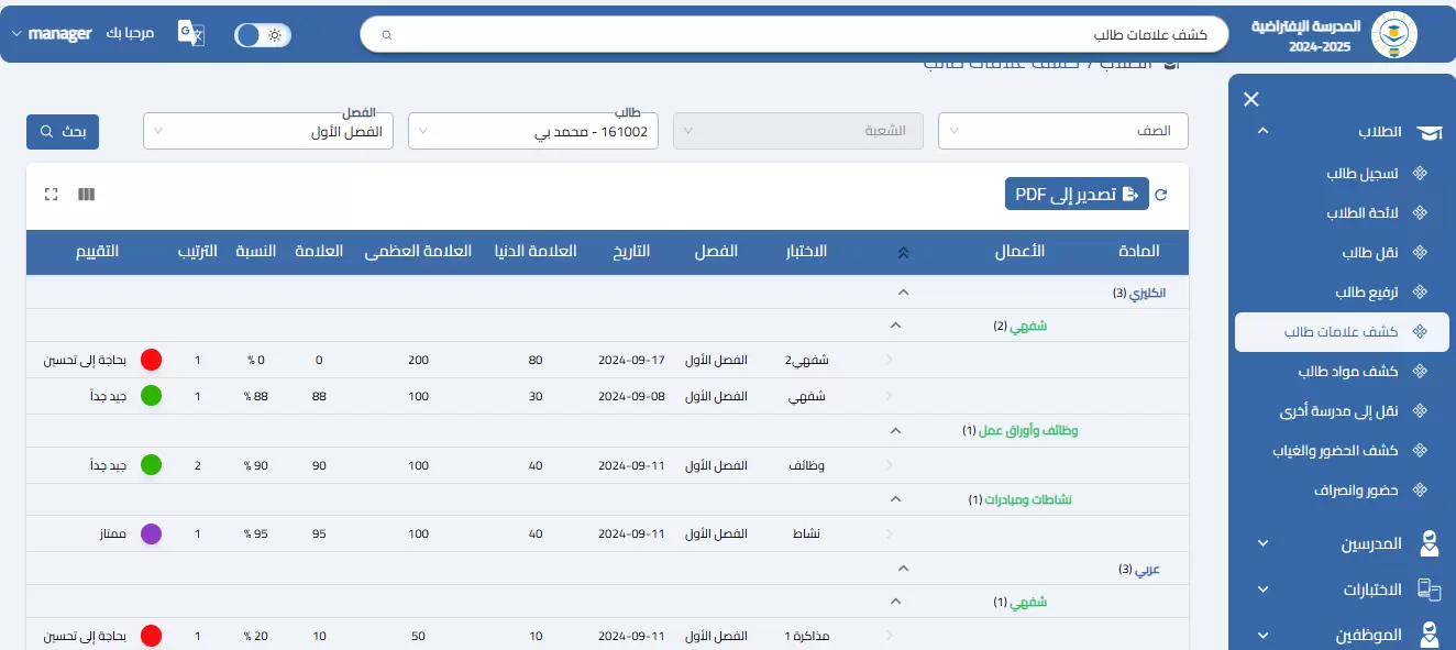 5- يقسم البرنامج إلى قسمين قسم خاص بالتحصيل العلمي وقسم مالي